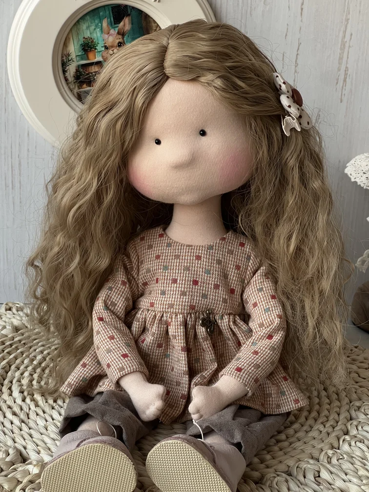 Анюта — это штрих к настроению. Для тех, кто ценит ручную работу, тепло в деталях и куклы, которые будто бы живут собственной тихой жизнью.