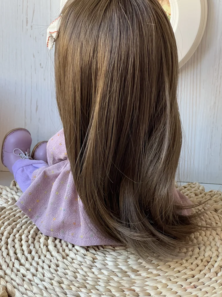 • Волосы — длинные, тёмные, из искусственных волос премиум-класса: шелковистые, можно аккуратно причёсывать
