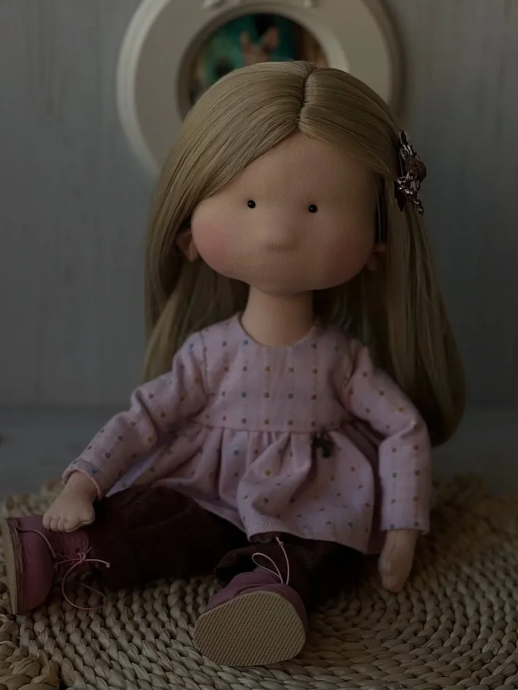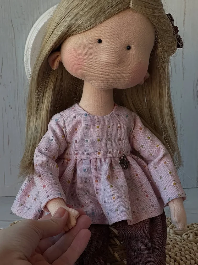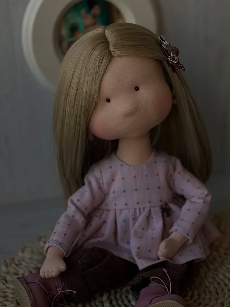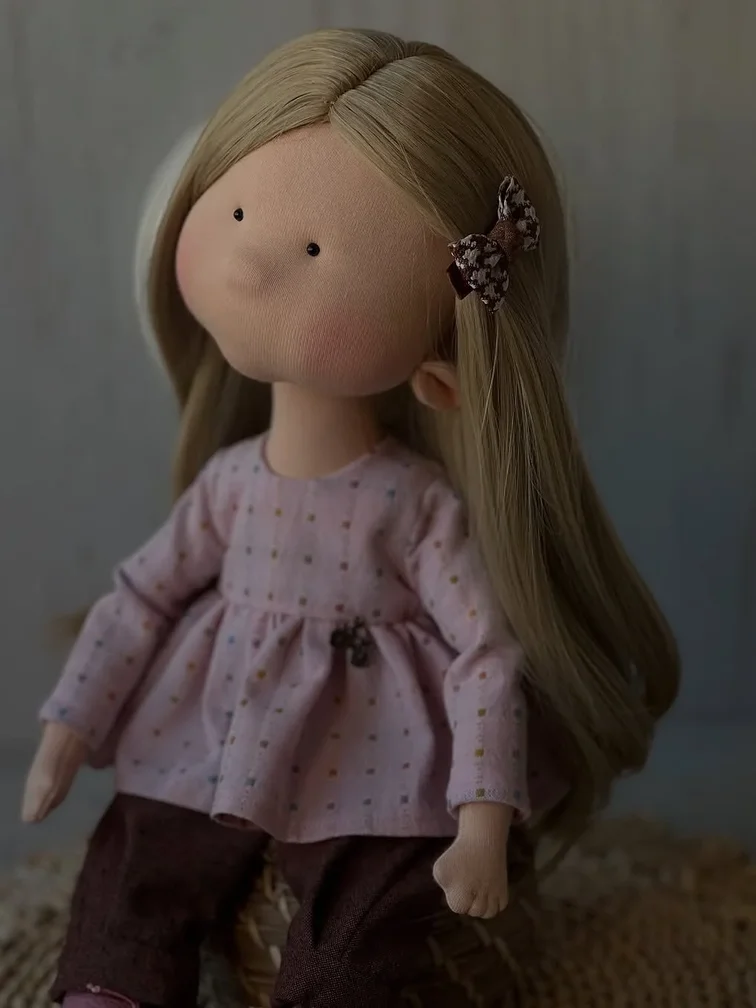 Важно: Есения — интерьерная кукла, требующая бережного отношения. Она не предназначена для активных детских игр, но станет прекрасным украшением комнаты, душевным подарком или частью коллекции.