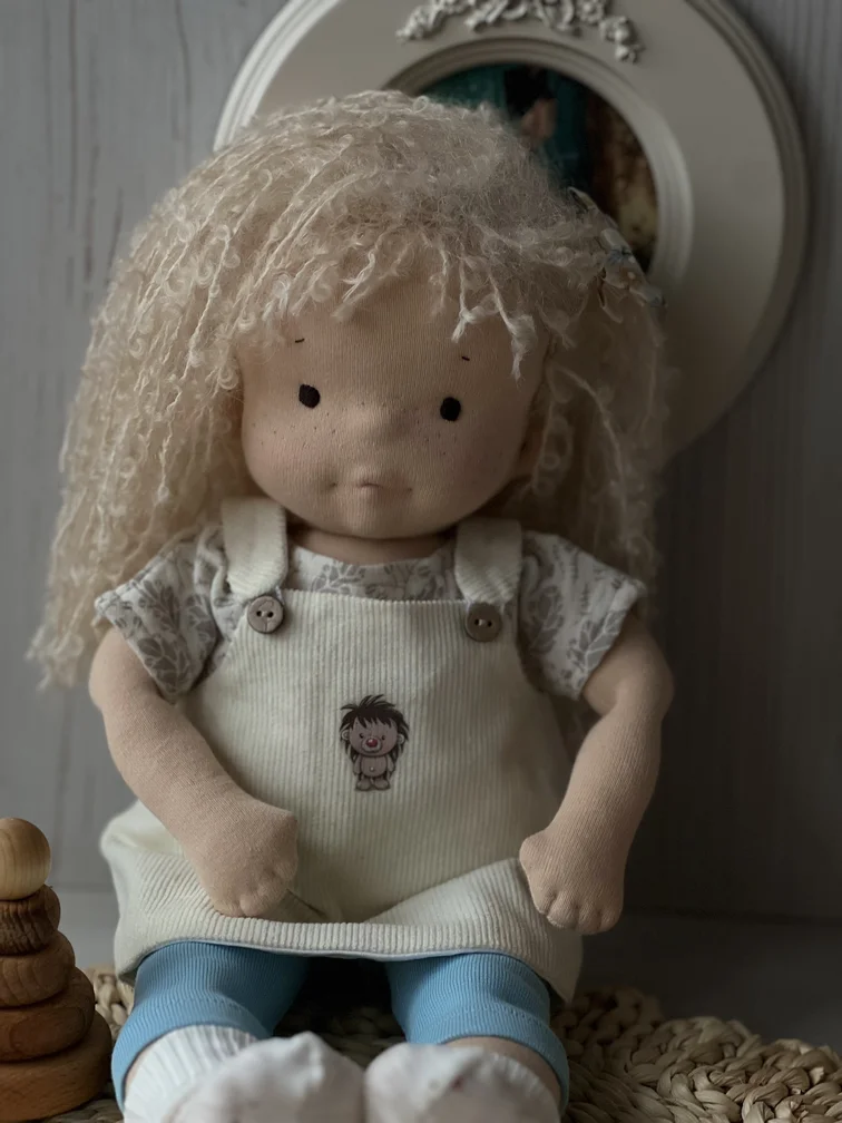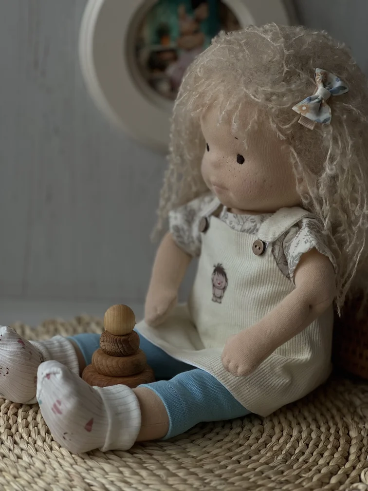 Эта текстильная малышка ручной работы создана с любовью, чтобы стать настоящей подружкой для ребёнка или трогательной частью вашей коллекции. Аленушка — уютная, стильная и очень душевная.
