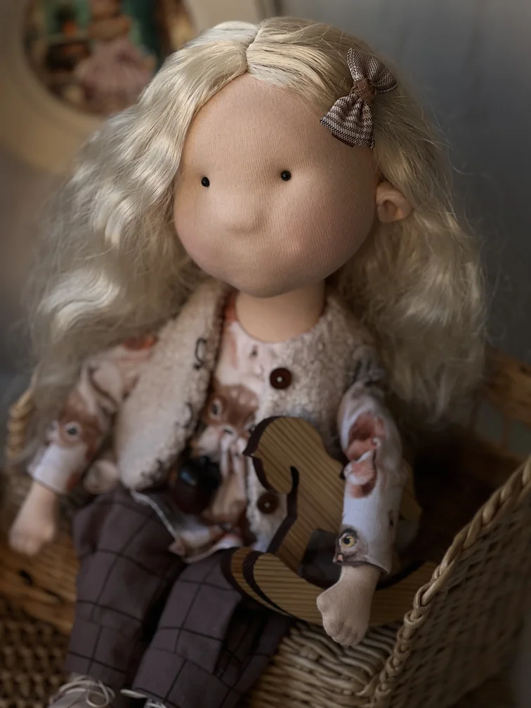 Важно: Зоя — интерьерная кукла, не предназначена для активных детских игр. Она требует бережного отношения и подойдёт для декора, коллекционирования или в подарок ценителям ручного творчества.
