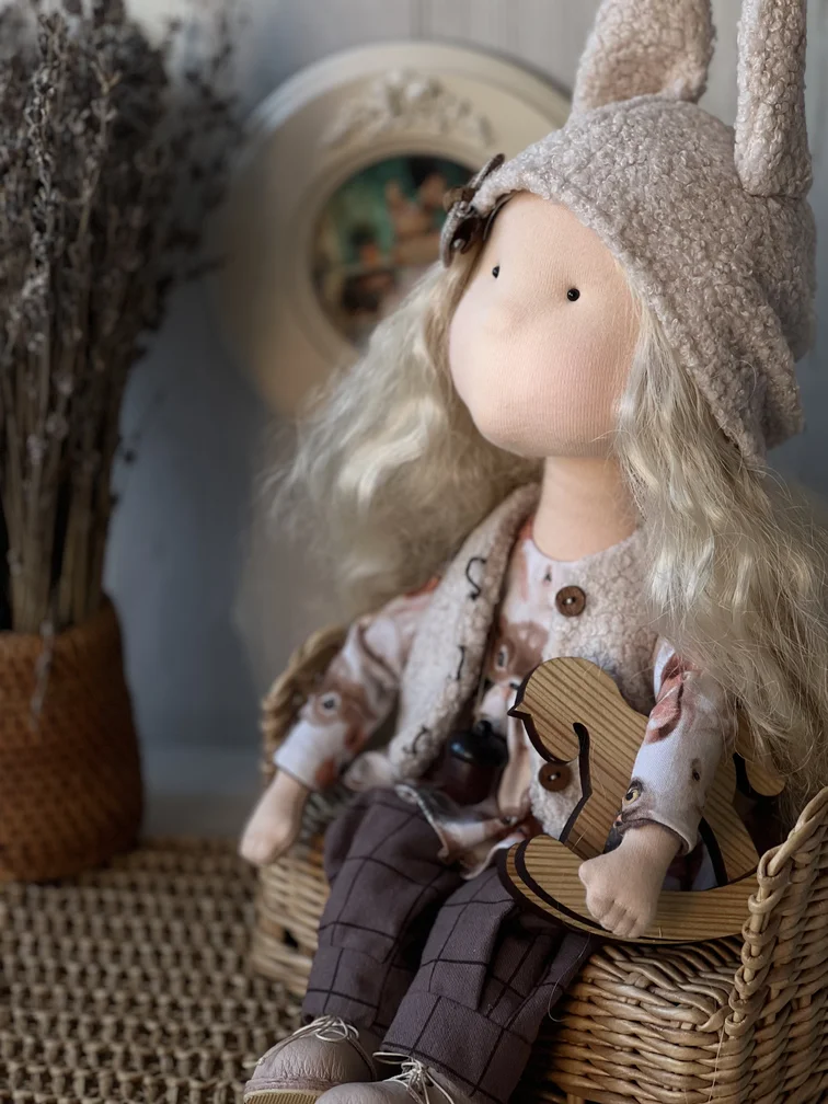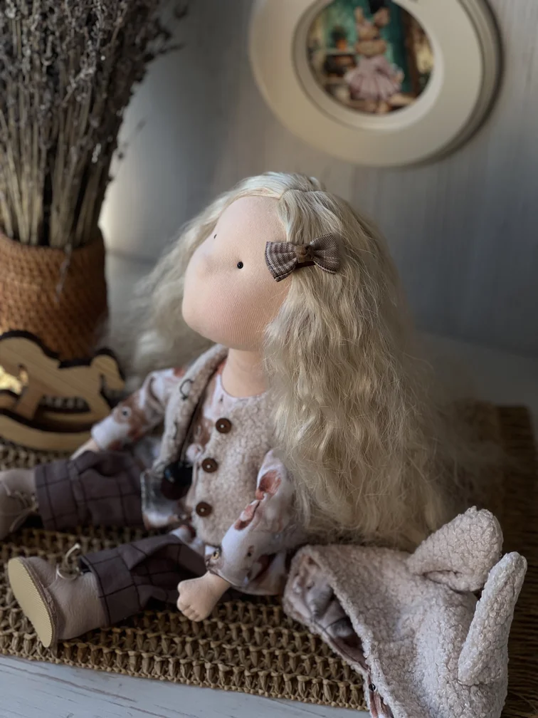 Зоя — стильная интерьерная куколка с характером и шармом. Очаровательная блондинка ручной работы, созданная из натуральных материалов, чтобы стать настоящим украшением вашего дома. Зоя — это не просто кукла, а атмосферная деталь интерьера, которая привлекает внимание с первого взгляда.